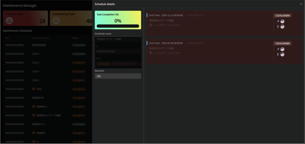 Industrial Manufacturing: Prevent production interruptions through timely equipment maintenance with overdue alerts and progress tracking